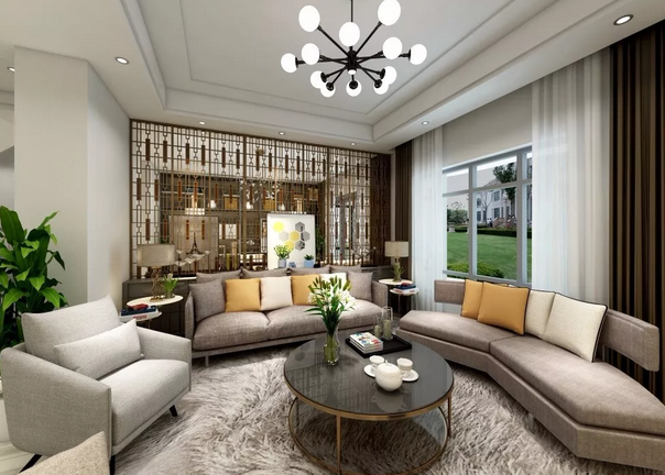 對(duì)于大戶型來說,更少的考慮面積,更多的考慮設(shè)計(jì)感,那么這兩面焦點(diǎn)墻的設(shè)計(jì),就相當(dāng)于室內(nèi)設(shè)計(jì)風(fēng)格的濃縮。新古典和新中式風(fēng)格的背景墻運(yùn)用到客廳,可保持風(fēng)格統(tǒng)一,時(shí)尚大氣有檔次。