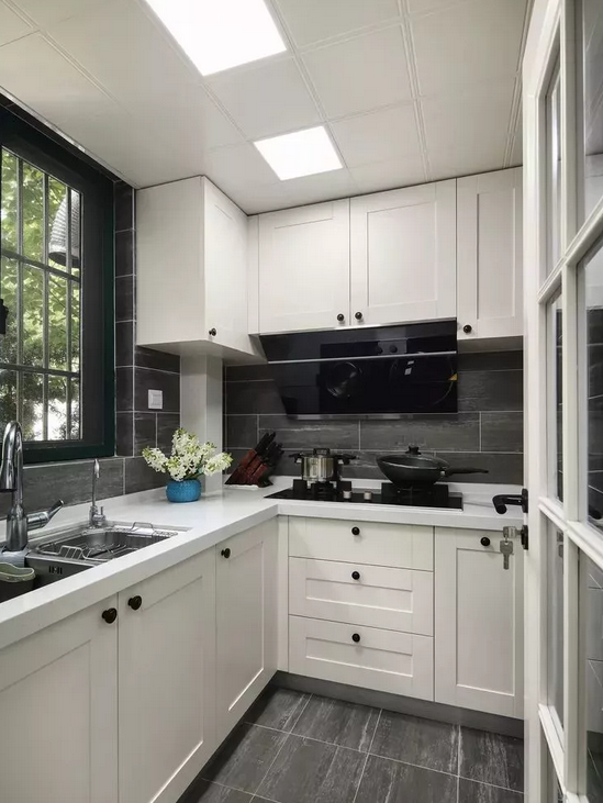 廚房吊頂結束之后再安裝櫥柜,吊頂安裝結束后廚房的高度才真正確定下來,可以根據總的高度適當調節(jié)吊柜的高度,兼顧吊柜使用的便利性和整體美觀;