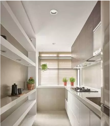 對(duì)于杯盤、瓷器喜歡的人來(lái)說(shuō),在廚房安排了整墻面的展示層架,讓心愛的餐瓷能完整陳列于家中,讓餐具也能成為家中的展示亮點(diǎn)。