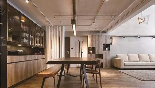 設(shè)計(jì)者將餐廳經(jīng)過(guò)重新配置,拉大了使用尺度,同時(shí)也能滿足男屋主愛下廚,能經(jīng)常邀請(qǐng)三五好友到家中做客、享受料理的需求。除了大尺度的餐廳、餐桌之外,同時(shí)也規(guī)劃了一座大面的餐具展示柜,一改過(guò)去將杯盤拾起的概念,而是將這些具鮮明色彩、特殊造型的杯盤一一展現(xiàn)出來(lái),不僅輕松完成收納,家的生活感表露無(wú)遺。