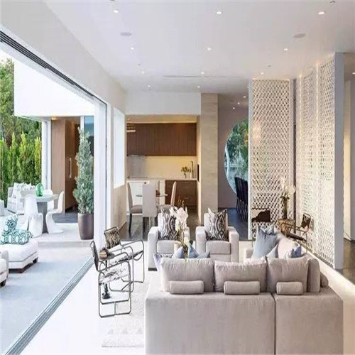 1、長(zhǎng)條形的客廳在與餐廳等隔斷時(shí),應(yīng)避免采用硬隔斷,因?yàn)楸緛砜臻g就小,硬隔斷會(huì)使客廳看起來像個(gè)箱子一樣,給人壓抑感,而且也有可能影響采光。開放式的客廳餐廳可能效果會(huì)更好一些,不管是休閑還是吃飯,都不會(huì)覺得擁擠。對(duì)于不喜歡開放式的朋友來說,可以使用軟隔斷,比如用一個(gè)簾子或者鏤空的屏風(fēng)等,效果都會(huì)非常不錯(cuò)。但是隔斷物的顏色不易太過厚重,以簡(jiǎn)潔輕快為好。