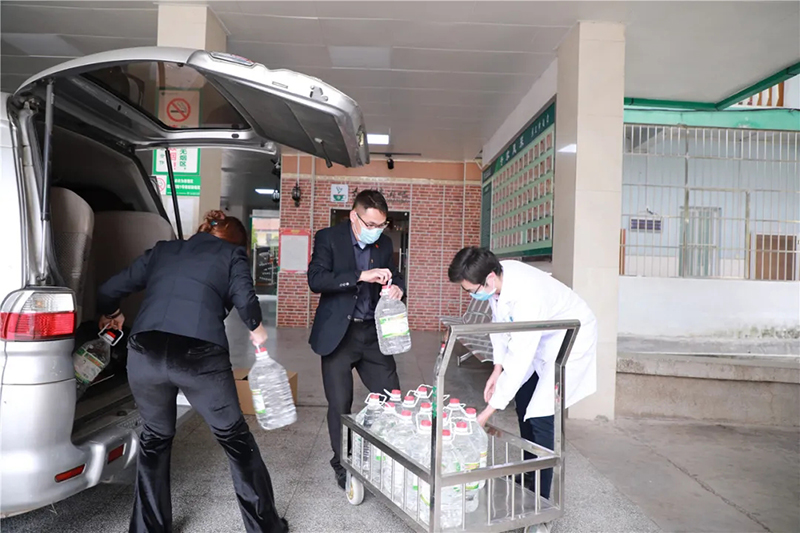 通過(guò)社會(huì)各界朋友們愛心提供的渠道,我們共采購(gòu)了抗疫物資:一次性醫(yī)用口罩(5000個(gè))、消毒水(5L/200桶)、醫(yī)用酒精(5L/200桶)以及礦泉水(3600瓶)、八寶粥(1200瓶)、高鈣奶(1200盒)、餅干(100箱)。