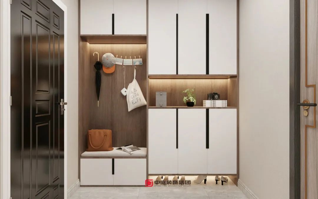 掛鉤相信大家都不陌生,它是我們家庭收納的好幫手。在玄關(guān)區(qū)域,可以在走道兩端的墻面上安置掛鉤,這樣我們?cè)诖蜷_家門的第一刻,便可把包包、帽子等飾品安放好,此時(shí)解脫的不僅僅是我們的雙手,更是生活的壓力與負(fù)擔(dān)。
