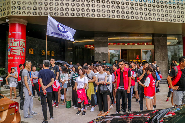 全體員工在公司樓下集合完畢,等待出發(fā)