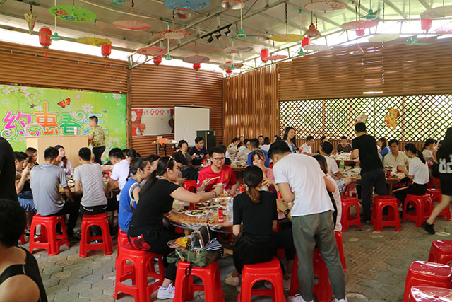 小憩時(shí)刻,與家人們共同享受美味佳肴。在品嘗美食時(shí)刻,主持人張經(jīng)理,邀請(qǐng)員工代表發(fā)言感想。