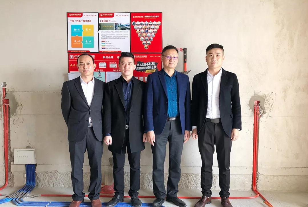在參觀完中庭裝飾集團展示廳及樣板房后,丁總及集團領(lǐng)導(dǎo)陪同洪斯君先生一起來到了新民宿舍的工地,現(xiàn)場進行巡查和指導(dǎo)工作。
