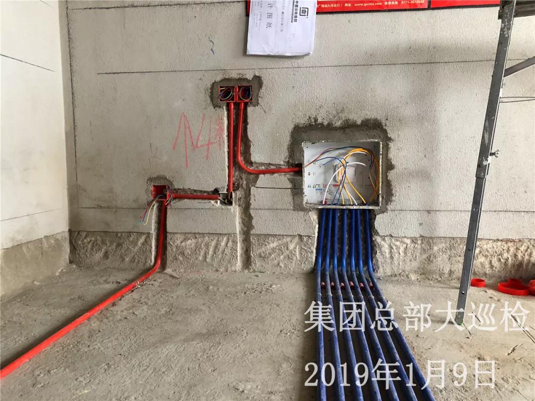 水電線管鋪設(shè)橫平豎直,管和管之間留有足夠縫隙,以便鋪設(shè)地磚時(shí)水泥砂漿進(jìn)入管下,防止地磚后期出現(xiàn)空鼓。強(qiáng)弱電交匯處做錫紙包裹保護(hù)。