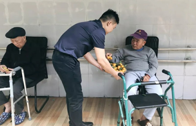 ▲集團(tuán)副總裁湯炬峰(圖中)帶隊(duì)到達(dá)敬老院