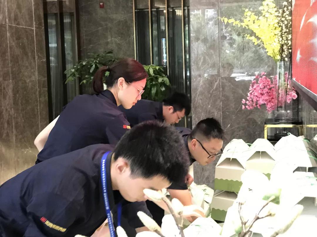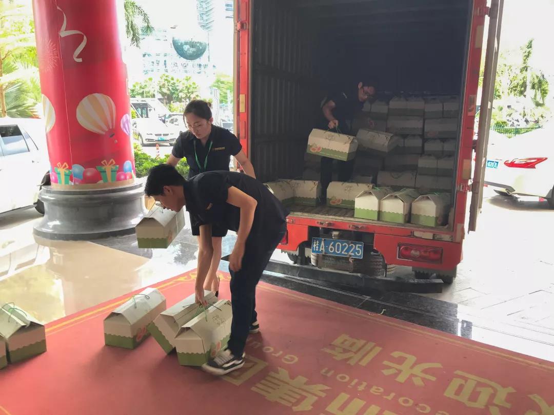 中午時候幕后工作的家人就已經(jīng)中秋禮盒擺放在一樓大廳。
