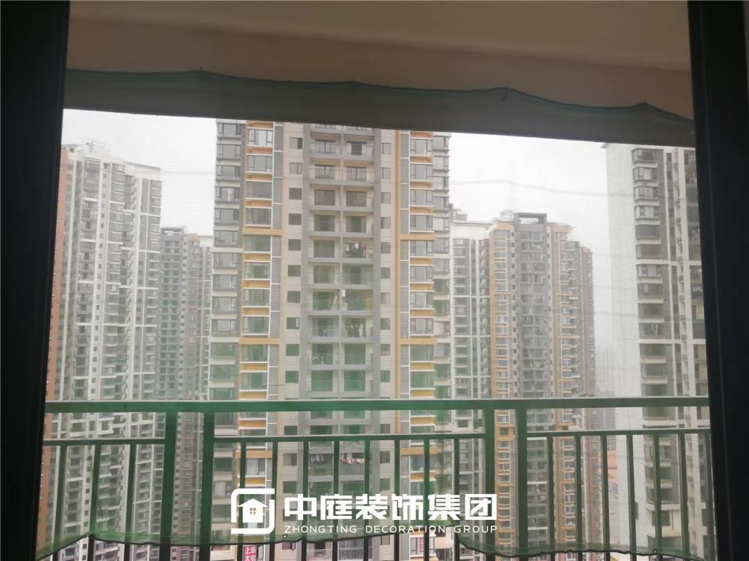 防護掛網(wǎng)懸掛到位。綠色防護掛網(wǎng),醒目的顏色為工人的施工安全保駕護航。細密的掛網(wǎng)也避免了在陽臺切割瓷磚時造成大量的灰塵飄逸出去,保護小區(qū)環(huán)境。