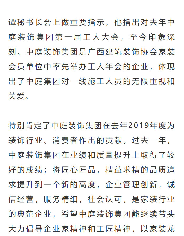 中庭裝飾集團2019年度工人表彰大會圓滿舉辦
