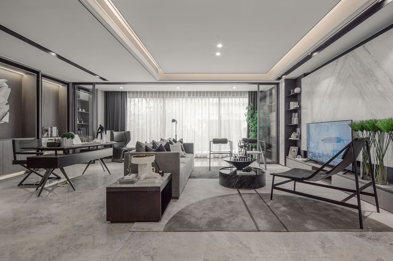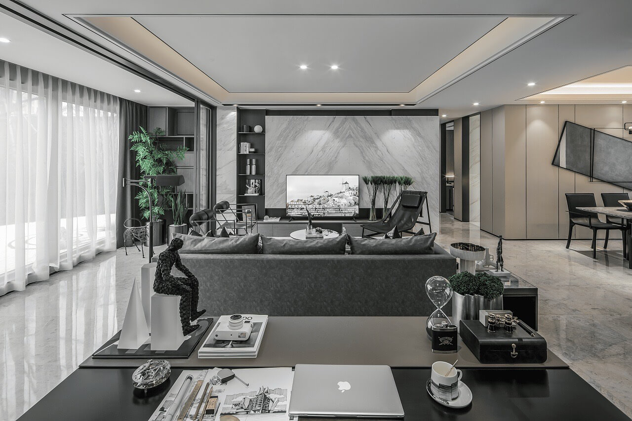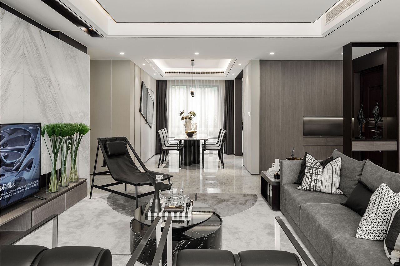 本案為現(xiàn)代簡約風格案例,業(yè)主喜歡簡約的黑白灰主色調(diào),設(shè)計師以經(jīng)典而理性的黑白碰撞,鋪陳于極具藝術(shù)調(diào)性的空間紋理,流暢的線條與留白化的處理,讓空間處處散發(fā)精細而不失簡致的都市風尚。