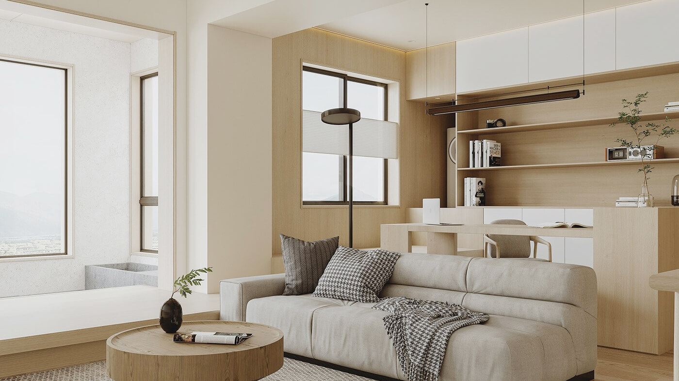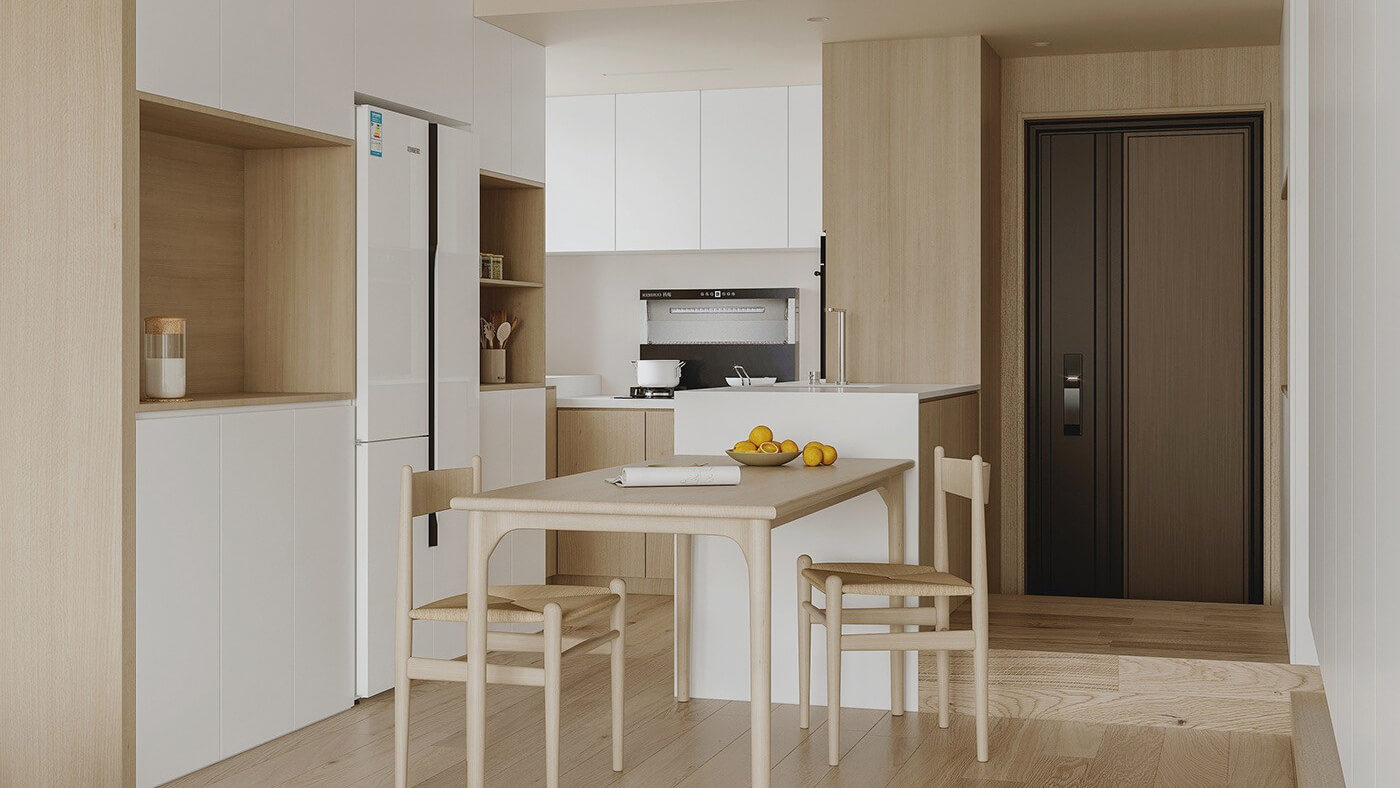 該案例采用木質(zhì)元素,整體呈現(xiàn)簡約效果,空間上將空間極大化利用的設(shè)計。日式家居中多采用沉靜溫和的自然色彩,家具的造型線條簡潔,大氣又自然。