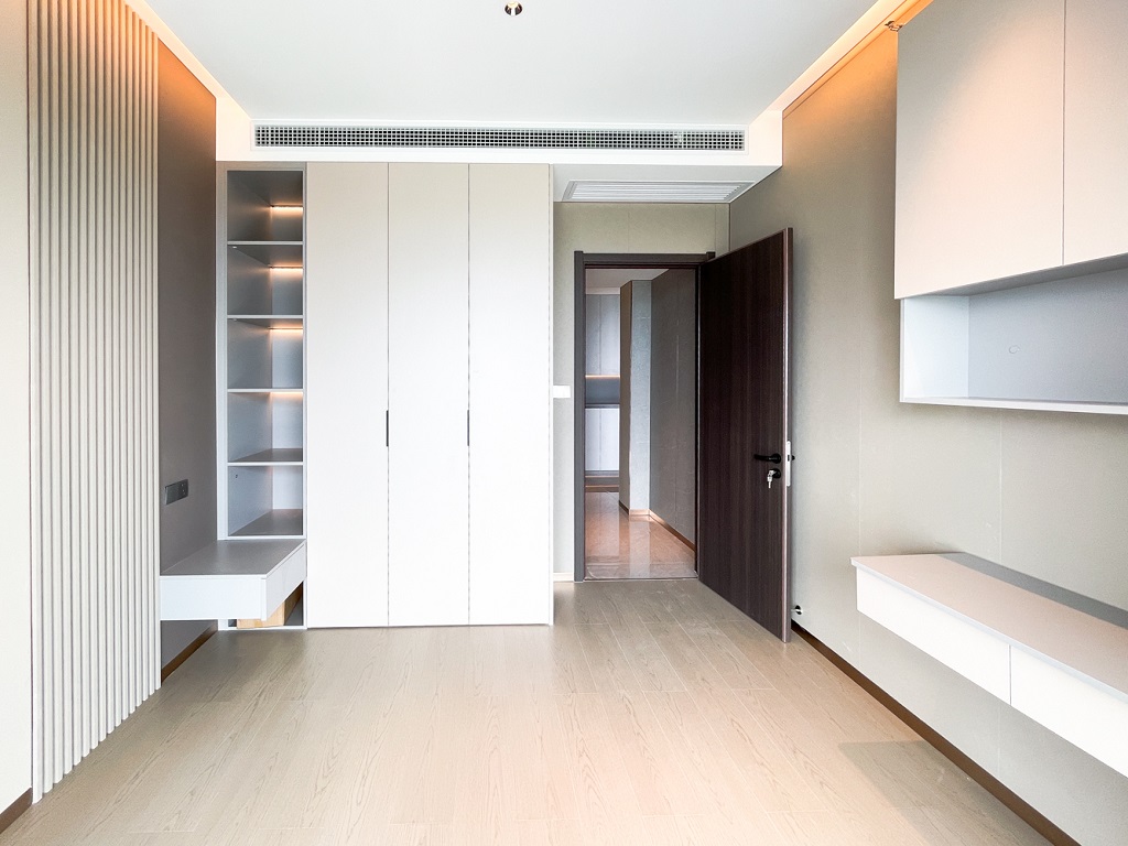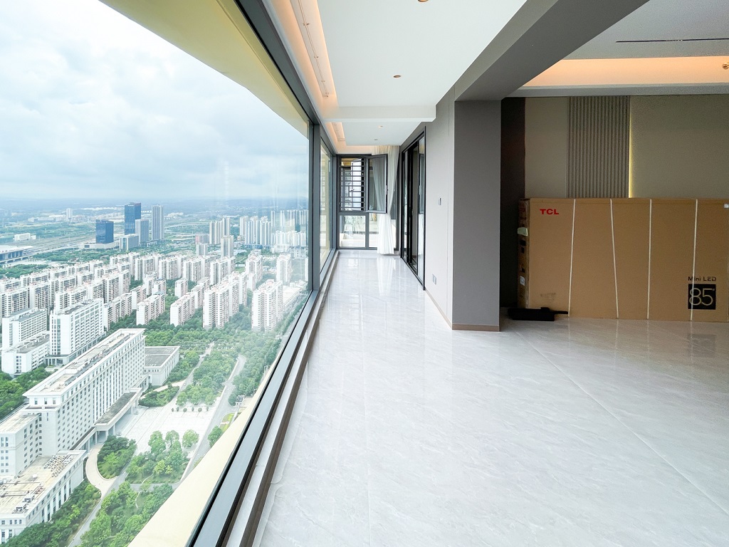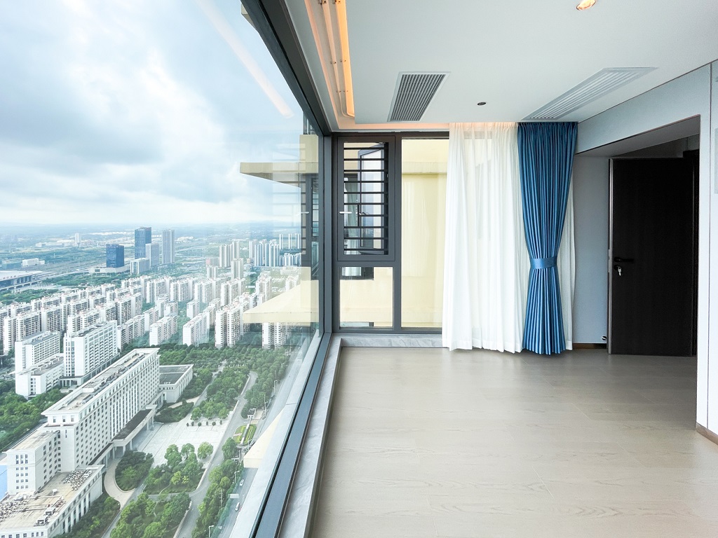 陽臺(tái)和空間色調(diào)相輔相成的大面積落地窗,干凈規(guī)整的收納儲(chǔ)物空間柜,找到美的共鳴。