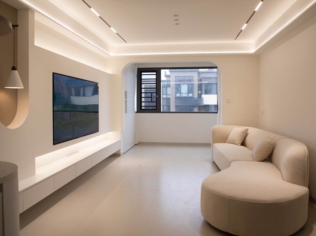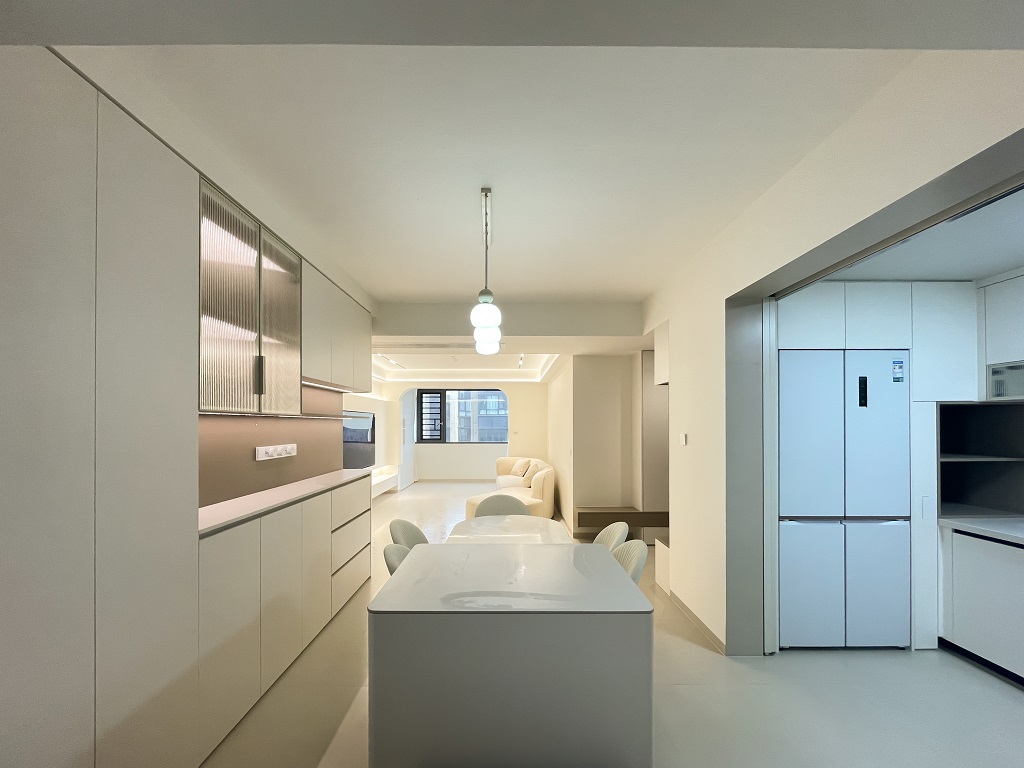 空間整體奶白色調(diào)裝飾,耶為空間帶來了充沛的光線,設計師整體結(jié)構(gòu)上不設明顯的界定,在裝修次材料、色彩搭配上逐步描述空間的構(gòu)成關(guān)系。
