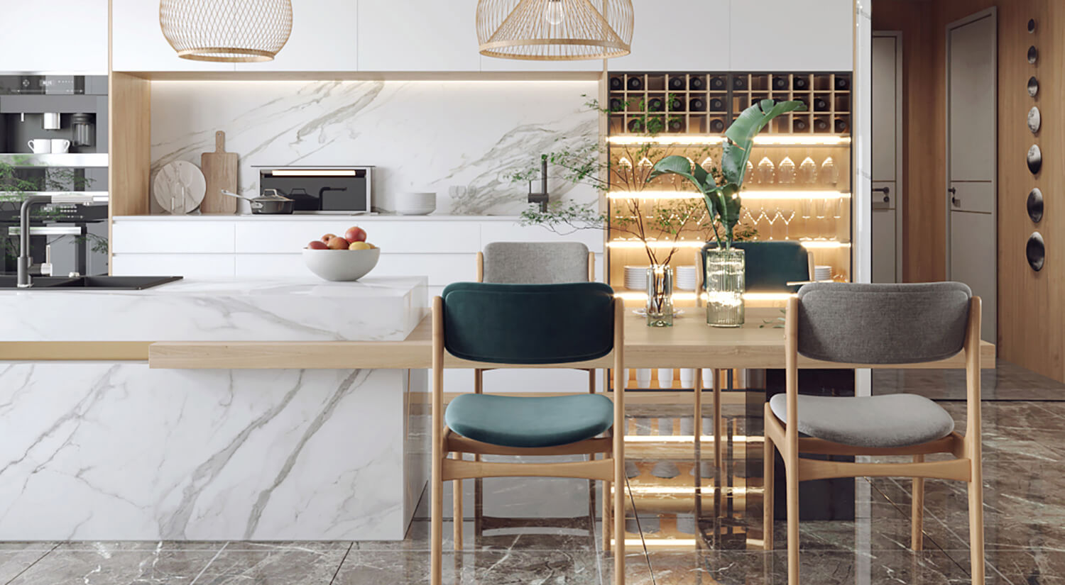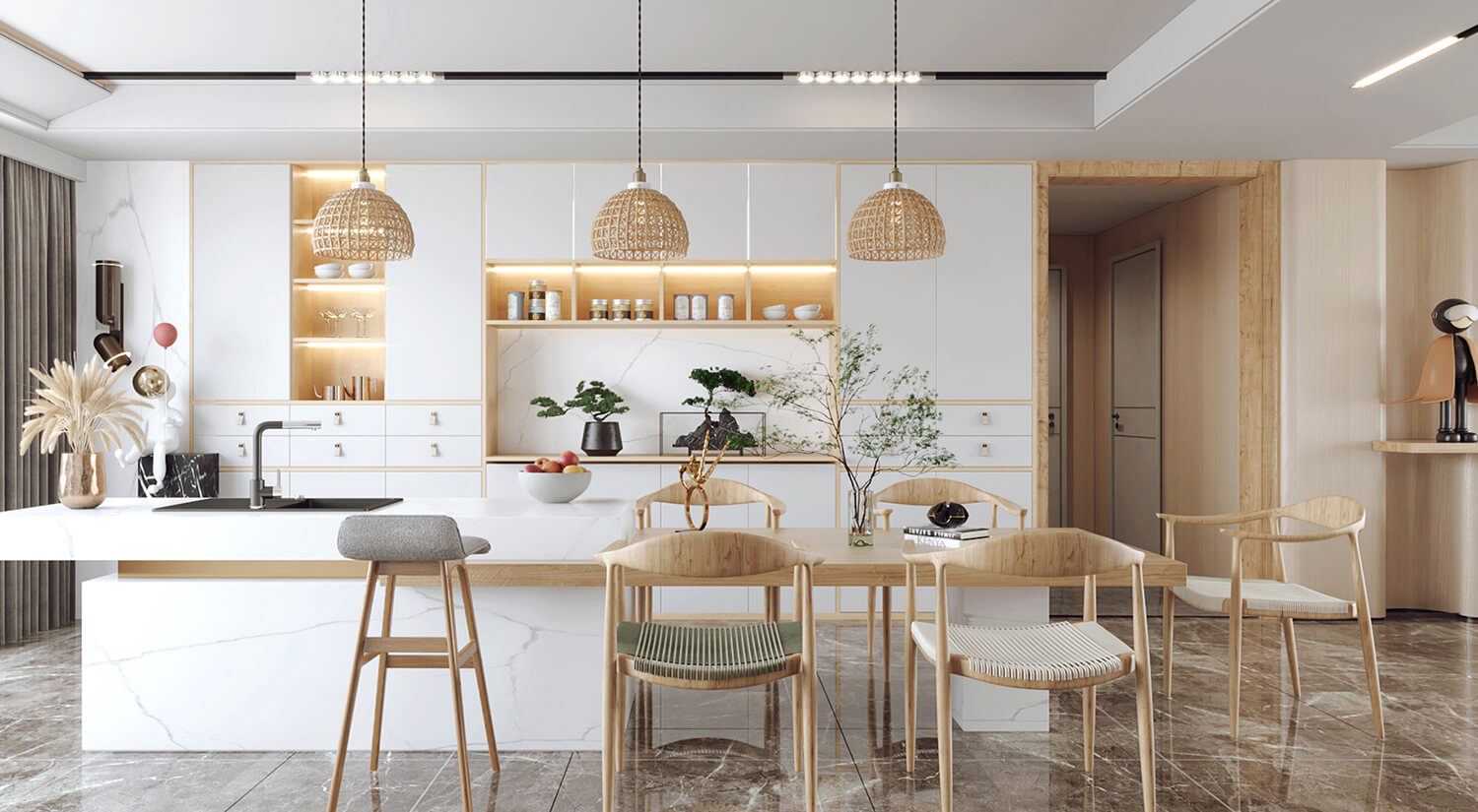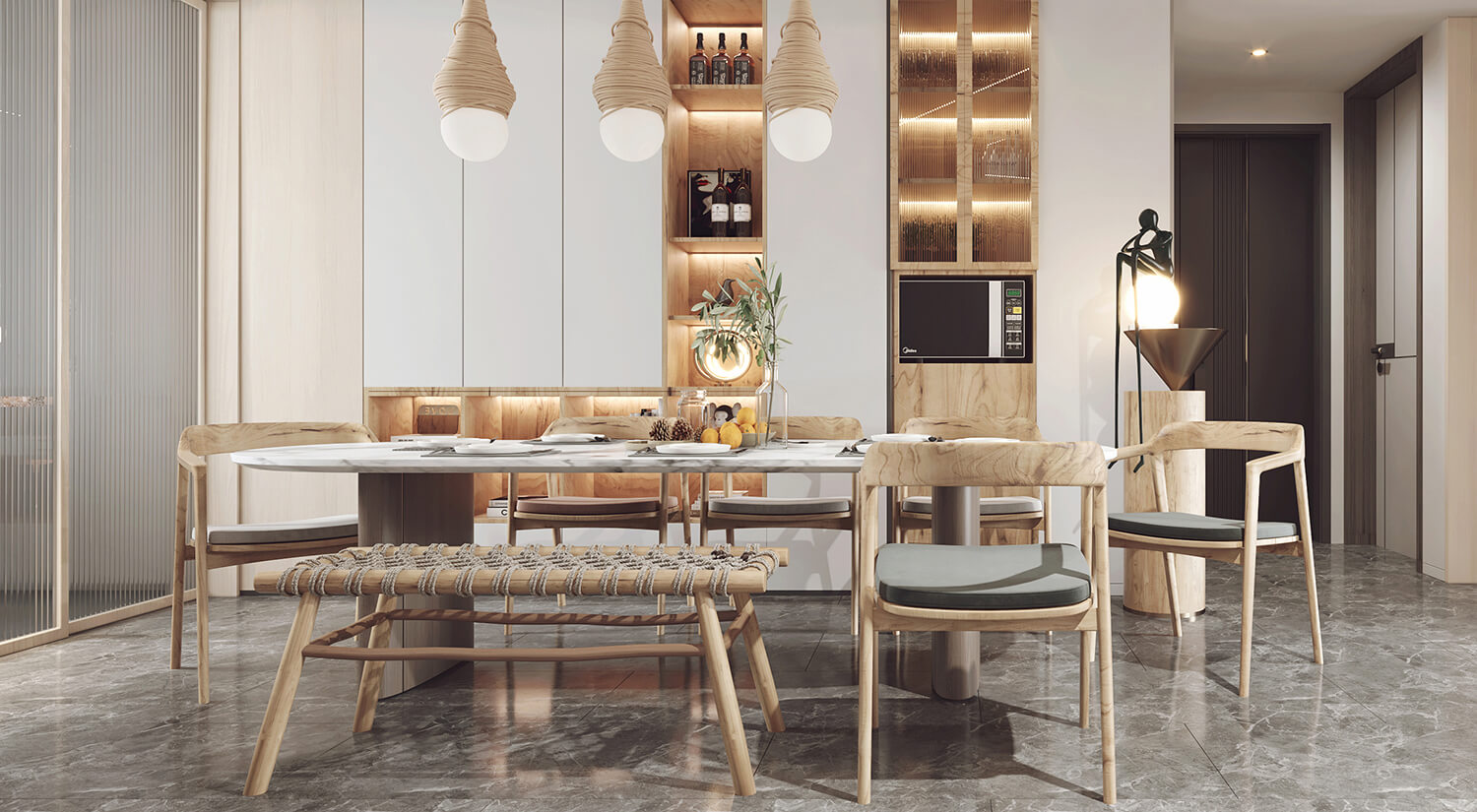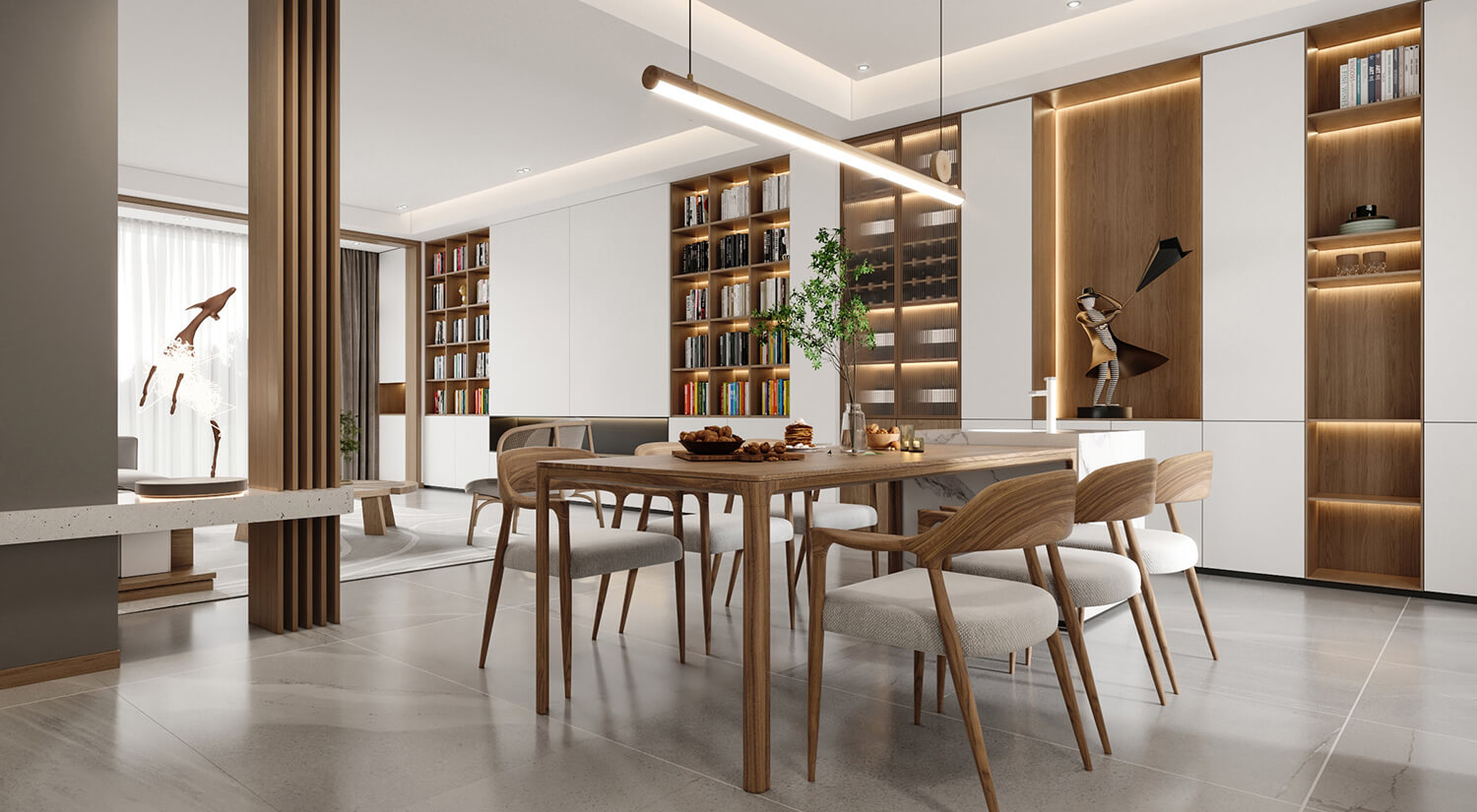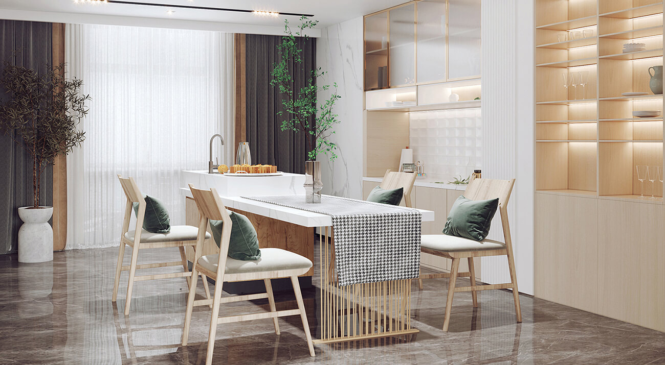 客餐廳使用了大量的木質(zhì)材料做家具,房間呈現(xiàn)自然、溫暖和舒適的感覺。
