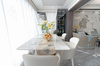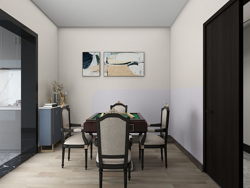 客廳、餐廳廚房是室內(nèi)空間里非常重要的區(qū)域,同時也占據(jù)了室內(nèi)的大部分空間。業(yè)主想要一個舒適大氣的客餐廳,希望設(shè)計師能在作品空間中展現(xiàn)的靈活性和延伸感,通過應(yīng)用線條的變化,色彩變化及不同筆法表現(xiàn)畫面的虛實與美感。女主人對麻將情有獨鐘,想擁有自己的麻將室。